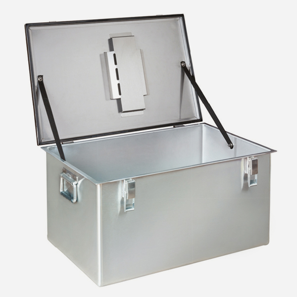 Incluida tapa con bisagras, cierres rápidos y correas de retención para la tapa
