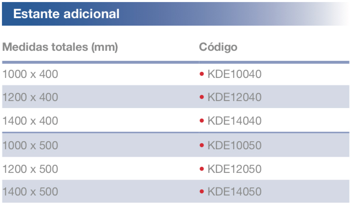• Profundidades de estantes disponibles: 400 y 500 mm.