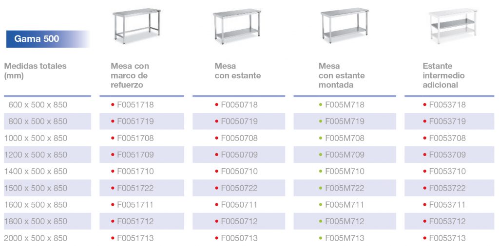 Mesa central. Gama 500